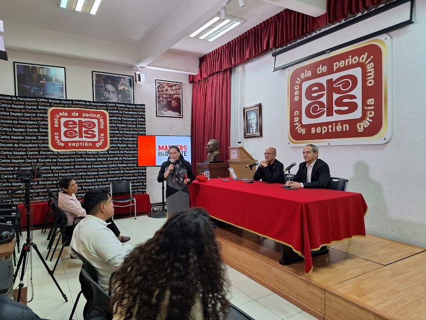 Anselmo Alonso, periodista deportivo de TUDN, y Javier Rodríguez, productor del programa “La Jugada”, estuvieron en la Escuela de Periodismo Carlos Septién García el 18 de noviembre para compartir con los estudiantes sus anécdotas y experiencias en los medios.